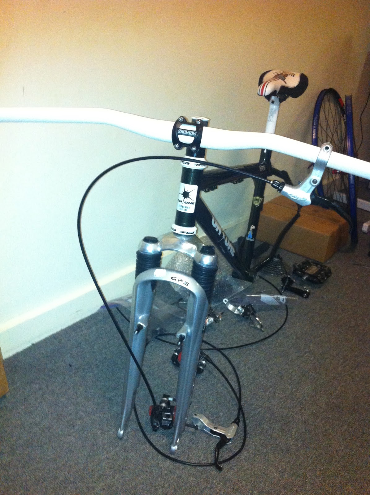 This is how the bike looks so far. Have not installed the brakes and rotors. The bike still has to be geared up. Will probably take care if that tomorrow.